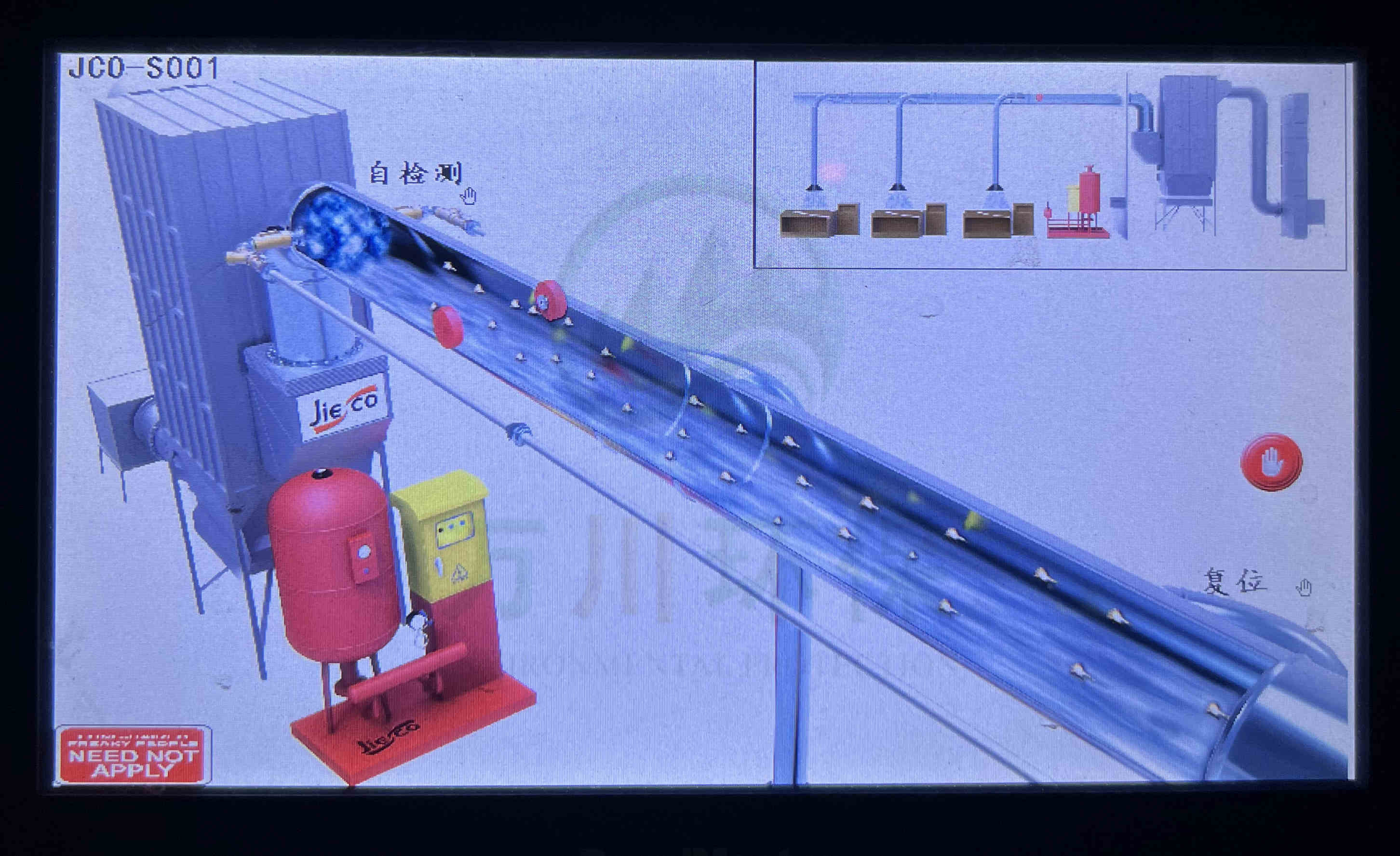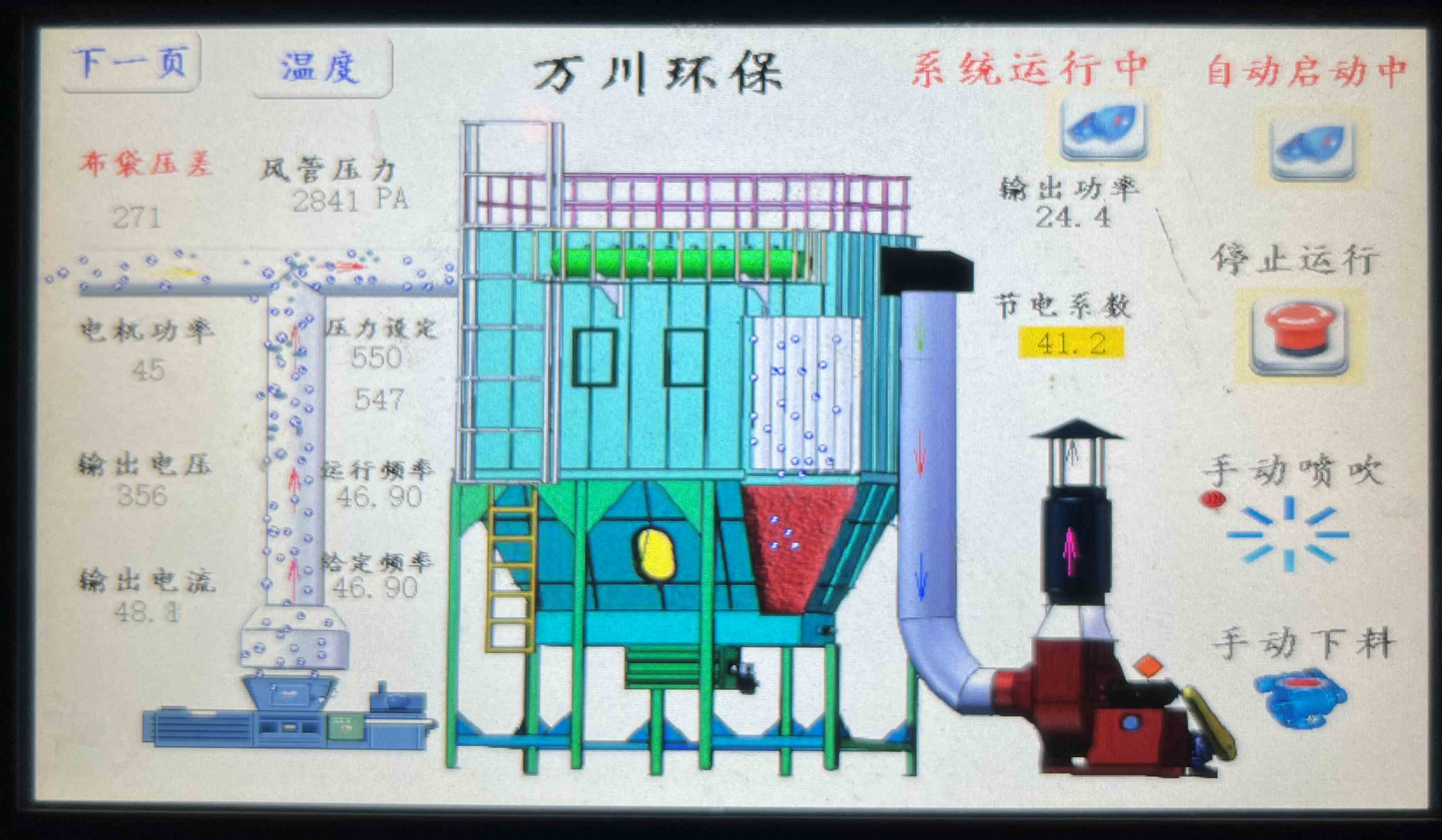 (萬川環(huán)保布袋除塵器配套電控系統(tǒng) 一鍵啟停操作方便快捷,簡單穩(wěn)定)                            (萬川布袋除塵器配套消防噴淋管路,為安全運(yùn)行保駕護(hù)航)
