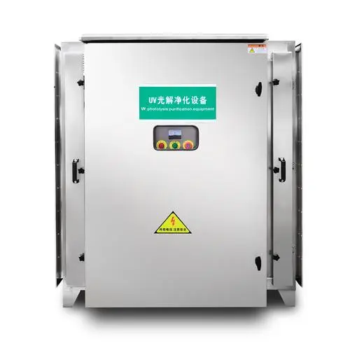 uv光解除臭設(shè)備:有機(jī)廢氣氣體處用排風(fēng)設(shè)備輸入到UV光解設(shè)備后,運(yùn)用高能UV紫外線光束及臭氧對(duì)惡臭氣體進(jìn)行協(xié)同分解氧化反應(yīng),使惡臭氣體物質(zhì)其降解化成低分子化合物、水和二氧化碳,再通過排風(fēng)管道排出室外。
