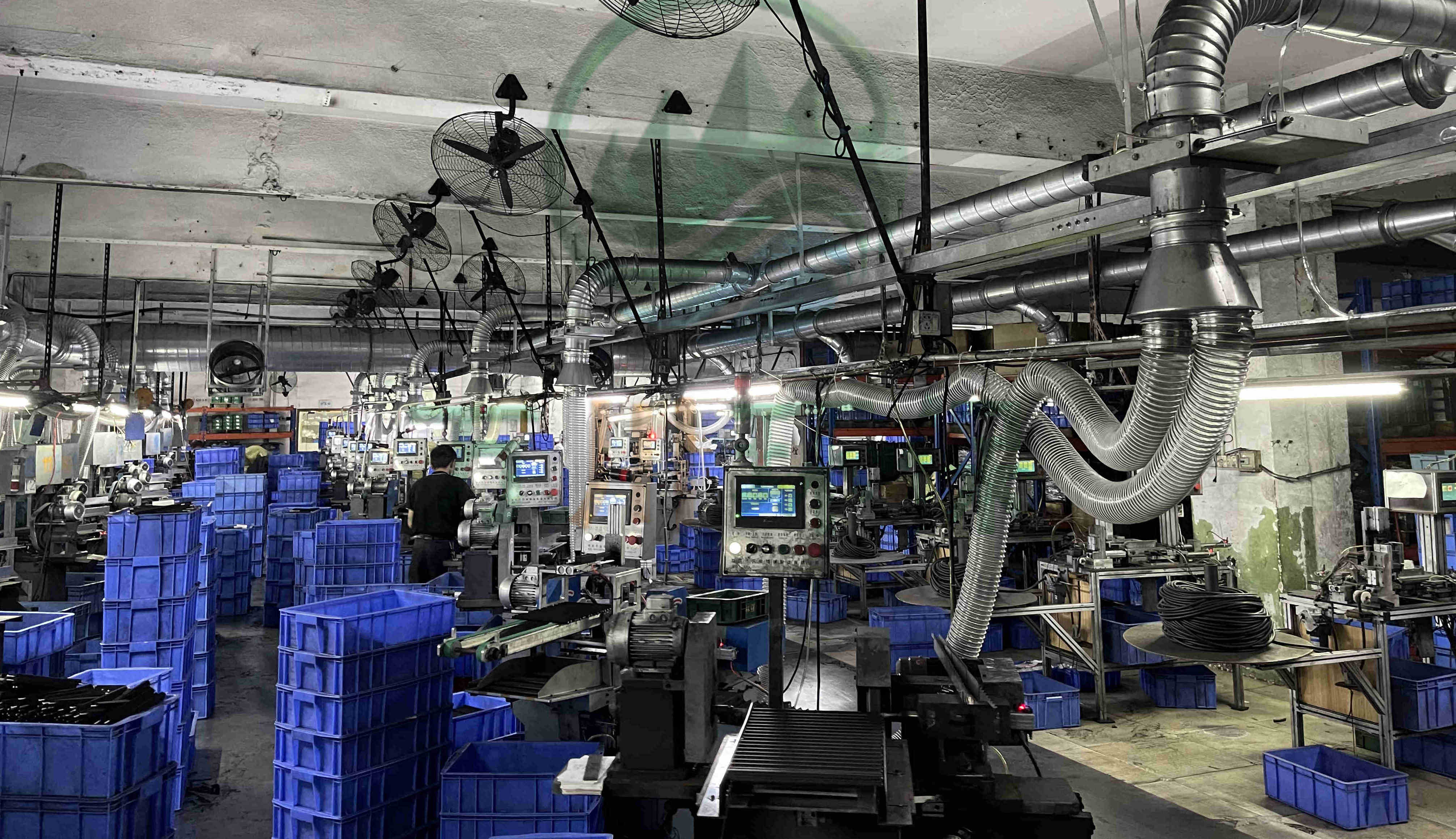 原有車間磨床,未裝備除塵系統(tǒng),磨床生產(chǎn)時(shí)產(chǎn)生大量粉塵,影響員工身體健康與生產(chǎn)環(huán)境。