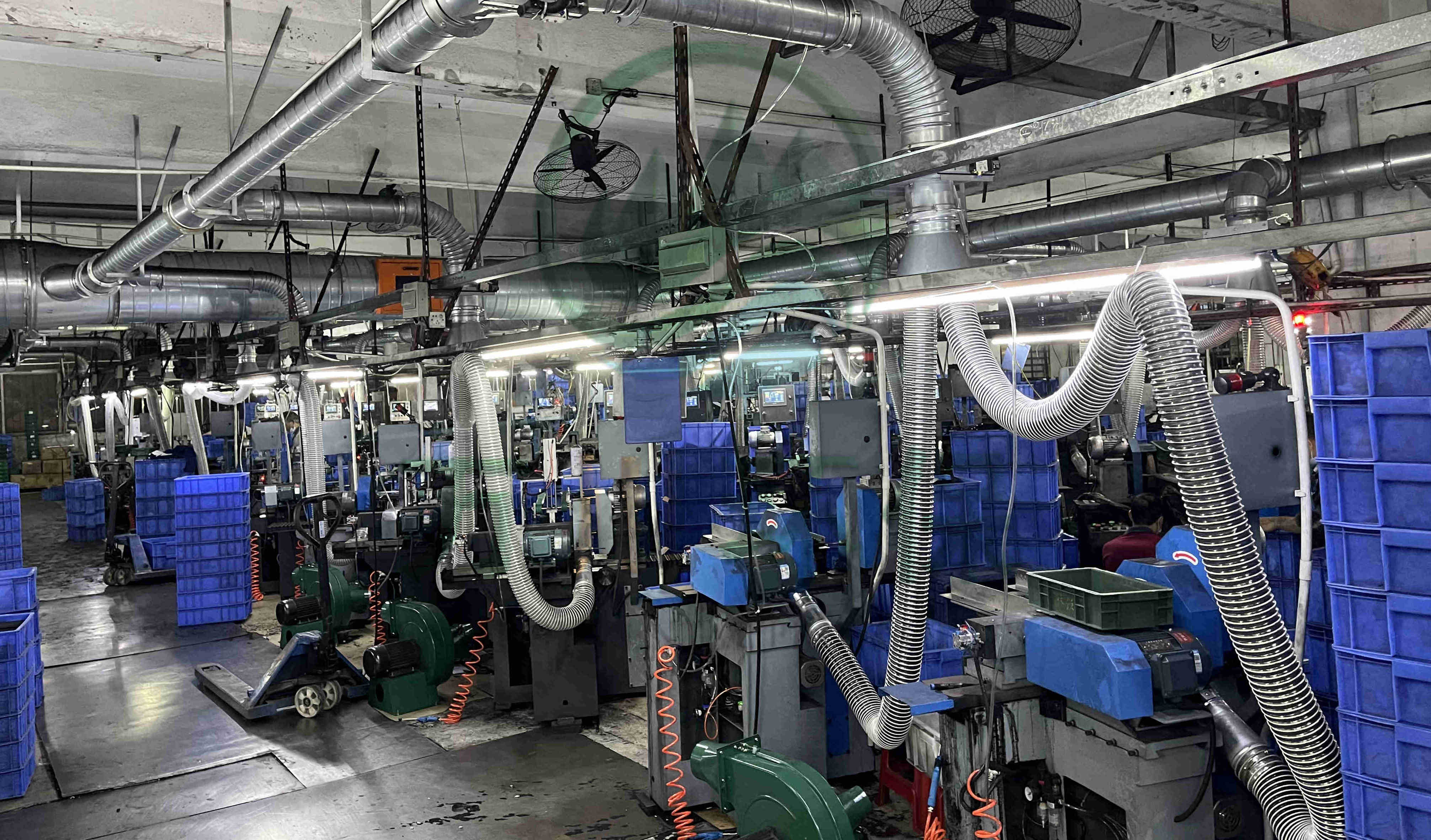 對(duì)60臺(tái)磨床進(jìn)行粉塵處理。萬川配套一套64000風(fēng)量脈沖布袋除塵器+除塵風(fēng)機(jī)+火星探測+隔爆+自動(dòng)化電控柜系統(tǒng)。